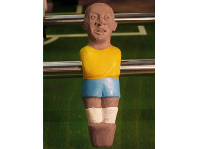 Handgeschnitzte Porträts und ein Kickerkasten aus massiver Eiche machen jeden zu einem Starkicker. Ein Tischfußballspiel der exklusiven Klasse!